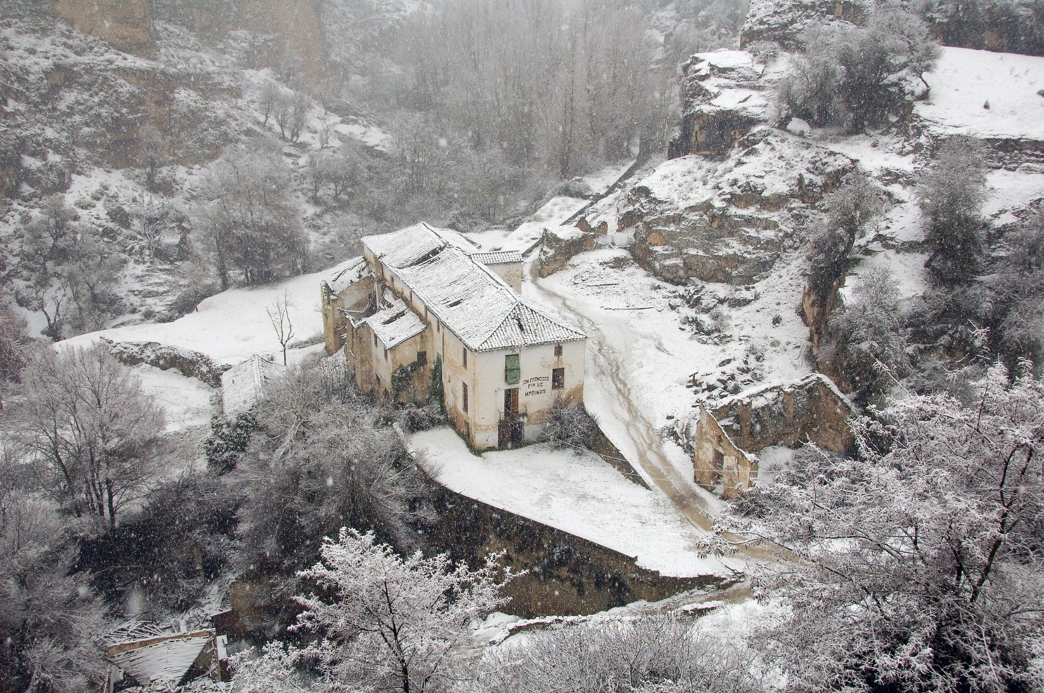 The Mill in snow, Alhama de Granada, Spain.